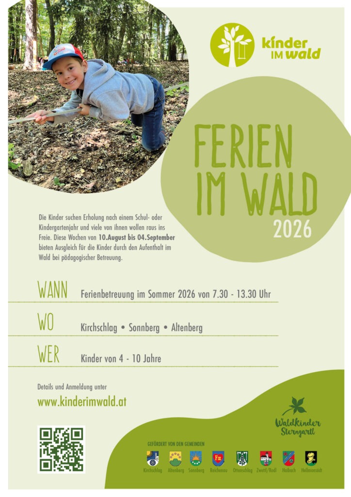 Die Kinder suchen Erholung nach einem Schul- oder Kindergartenjahr und viele von ihnen wollen raus ins Freie. Diese Wochen von 10. August bis 04. September 2026 bieten Ausgleich für die Kinder durch den Aufenthalt im Wald bei pädagogischer Betreuung.